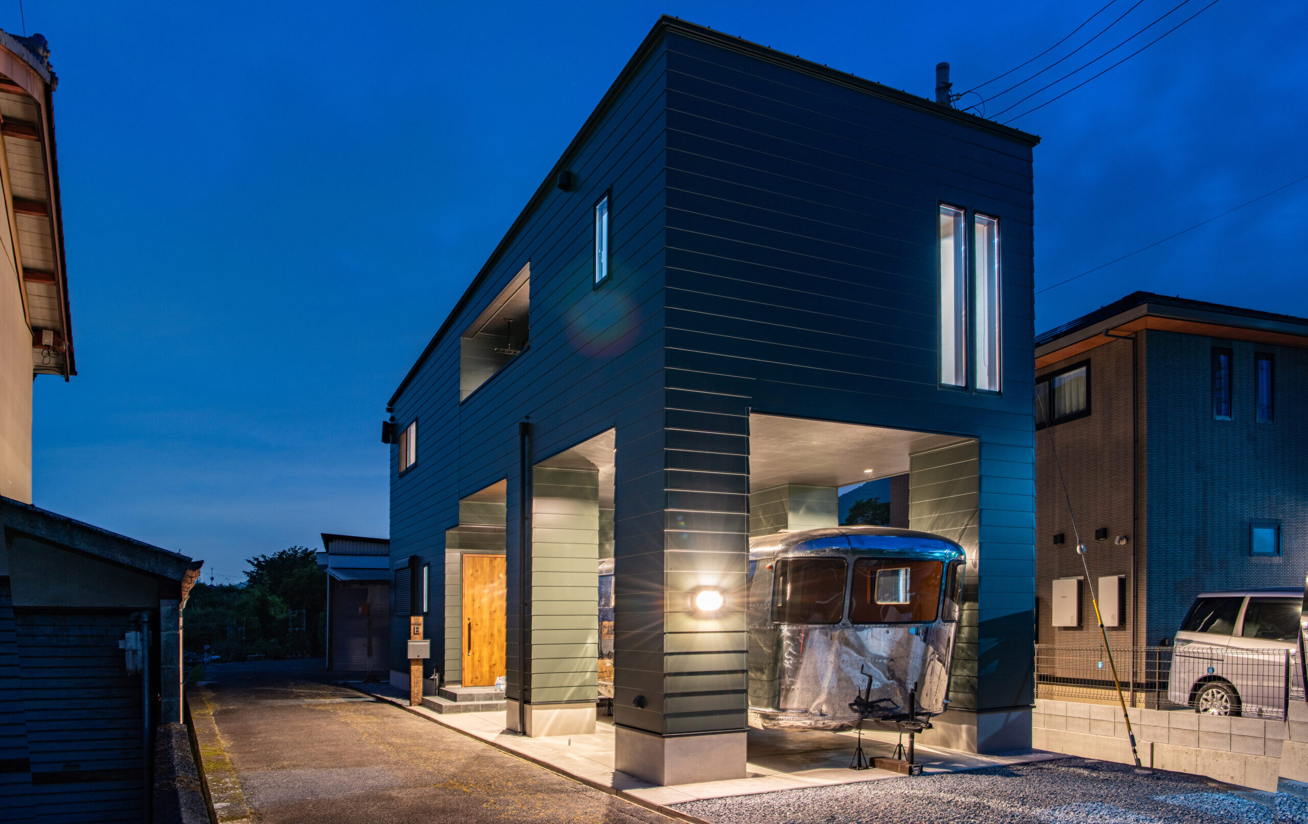 【ヴィンテージトレーラー×2階リビングで遊び心ある家】