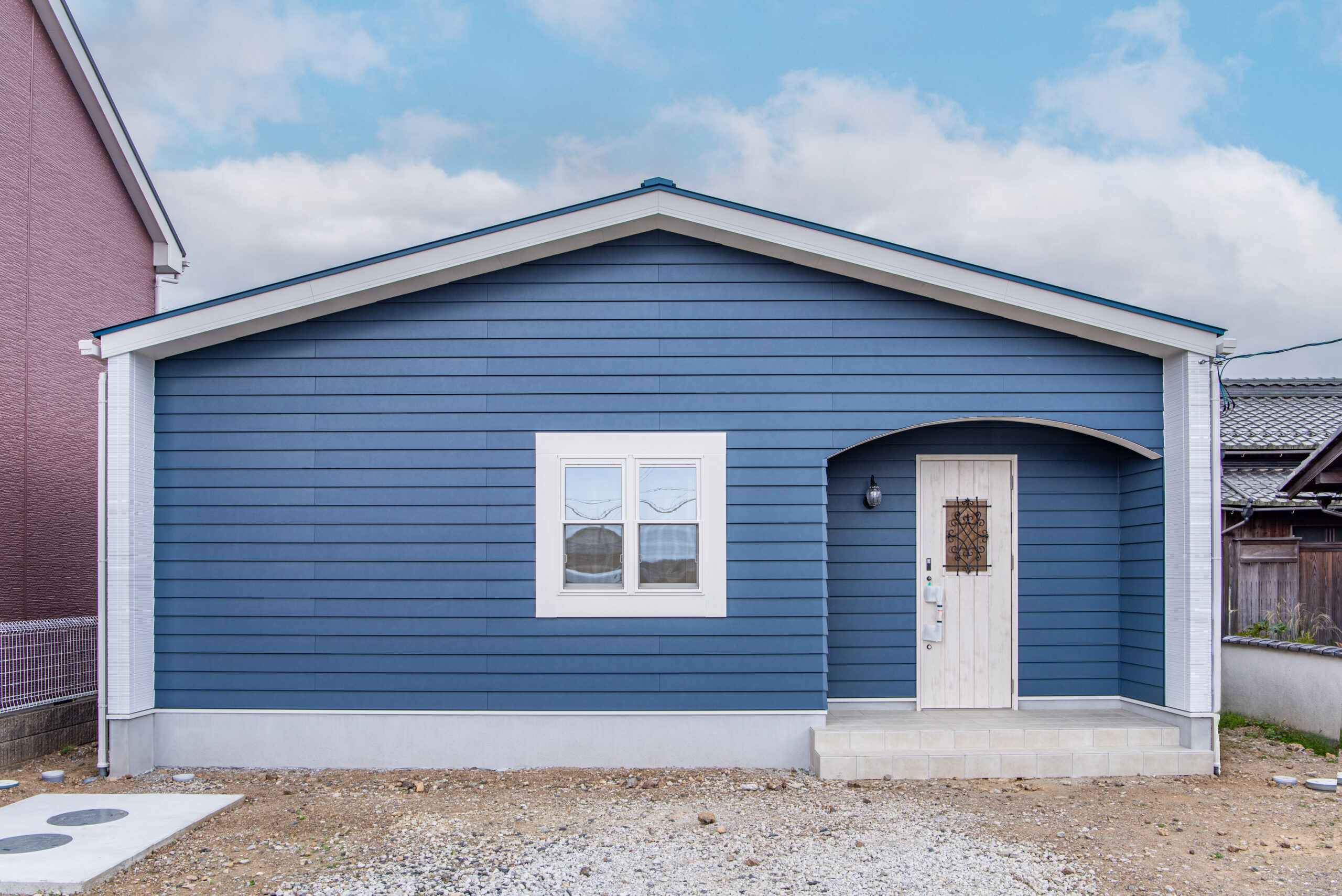 【ブルー×白がかわいい 三角屋根の平屋のおうち】